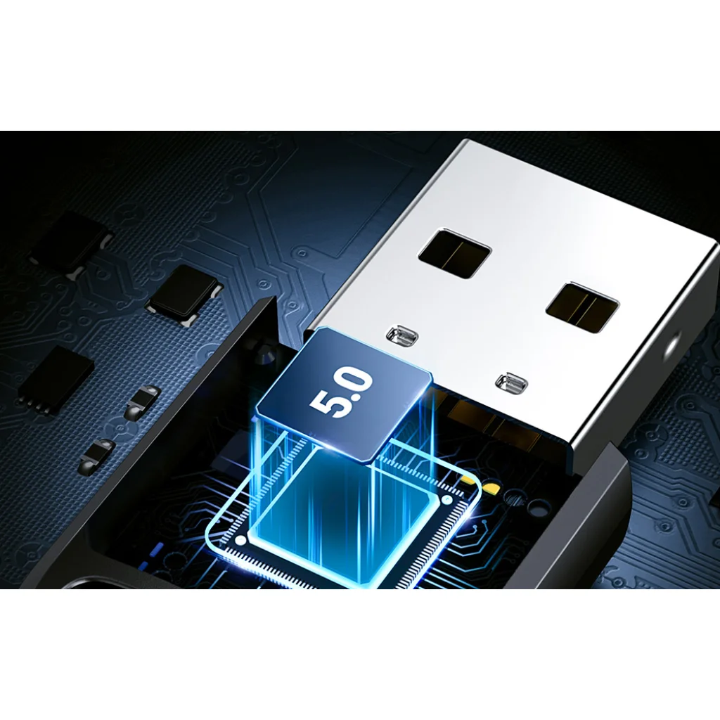 Az akár 20 m-es hatótávolságú kompakt Bluetooth adapter sokféle alkalmazásban hasznosnak bizonyul. Segítségével egyszerre akár 5 eszközt is csatlakoztathat vezeték nélkül a számítógépéhez. Kényelmesen játsszon zenét, használjon nyomtatót vagy vigyen át fájlokat telefonjáról – a lehetőségek valóban hatalmasak. A Bluetooth 5.0 gyors, stabil és megbízható adatátvitelt biztosít.