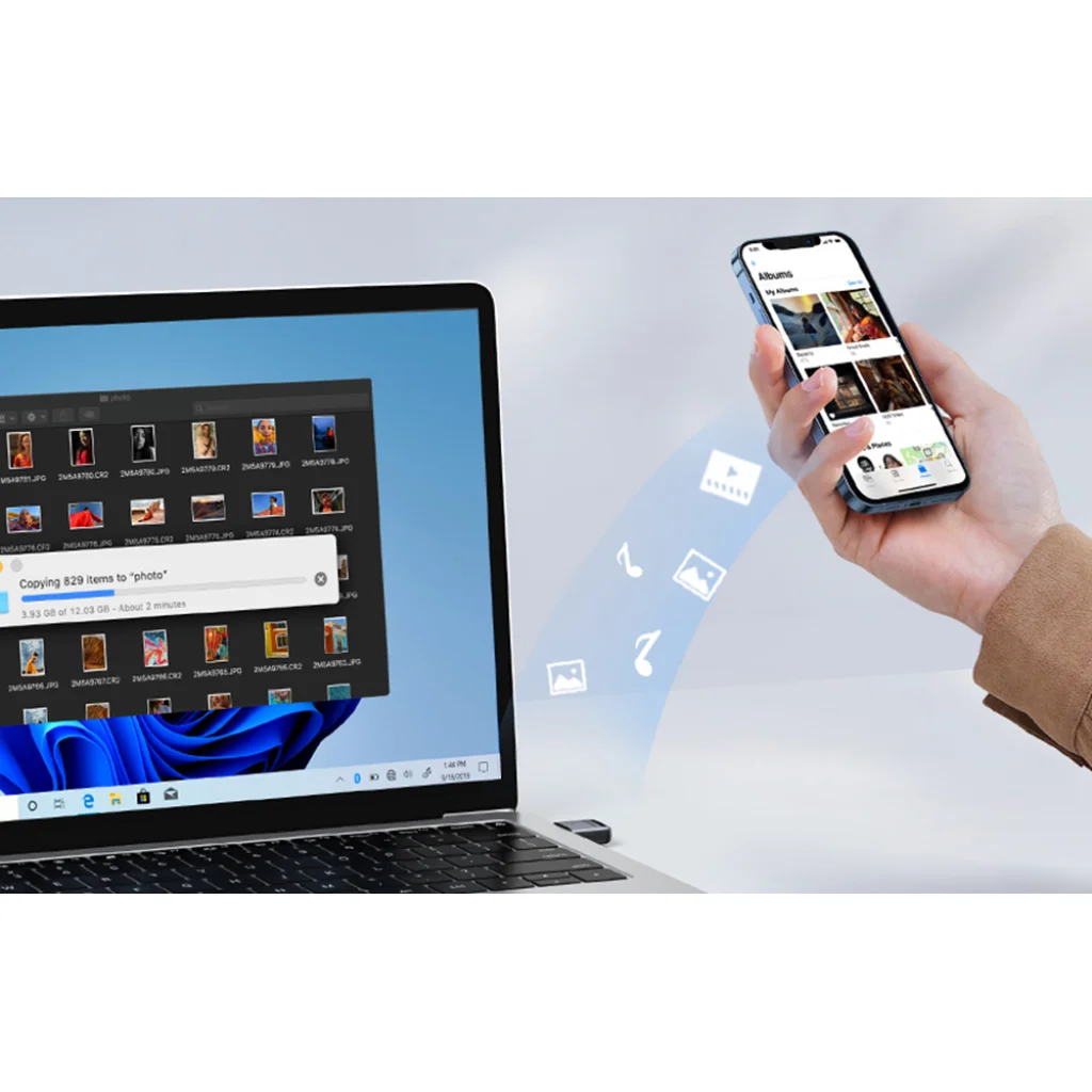 Az adapterrel kényelmesen átvihet adatokat a számítógép és a telefon között. Többé nem kell minden alkalommal a megfelelő kábelt keresnie! Csak vezeték nélkül csatlakoztassa okostelefonját laptopjához, és pillanatok alatt másolja át az összes szükséges fájlt. Az UGREEN segítségével pillanatok alatt átmásolhatja nyaralási fényképeit a számítógépére!