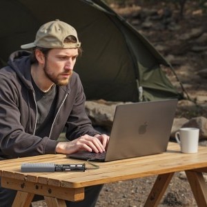A masszív alumínium ház, a szilikon védőborítás és a beépített fonott USB-C kábel minden körülmények között biztosítja a tartósságot és a kényelmet.