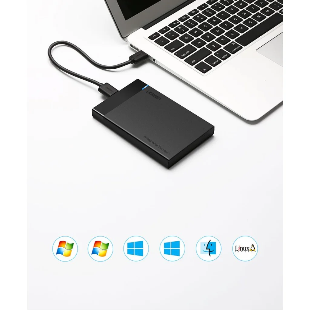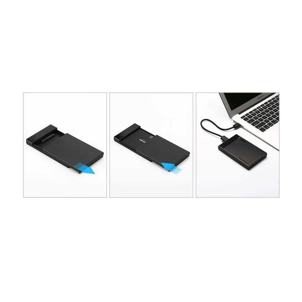Külső, 2.5' méretű SSD vagy HDD ( 6 TB max ) ház, SATA csatlakozással és USB 3.0 támogatással.