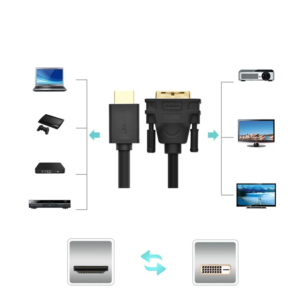 - Vagy egy HDMI aljzattal rendelkező forrást csatlakoztatunk egy DVI aljzatú kijelzőhöz vagy