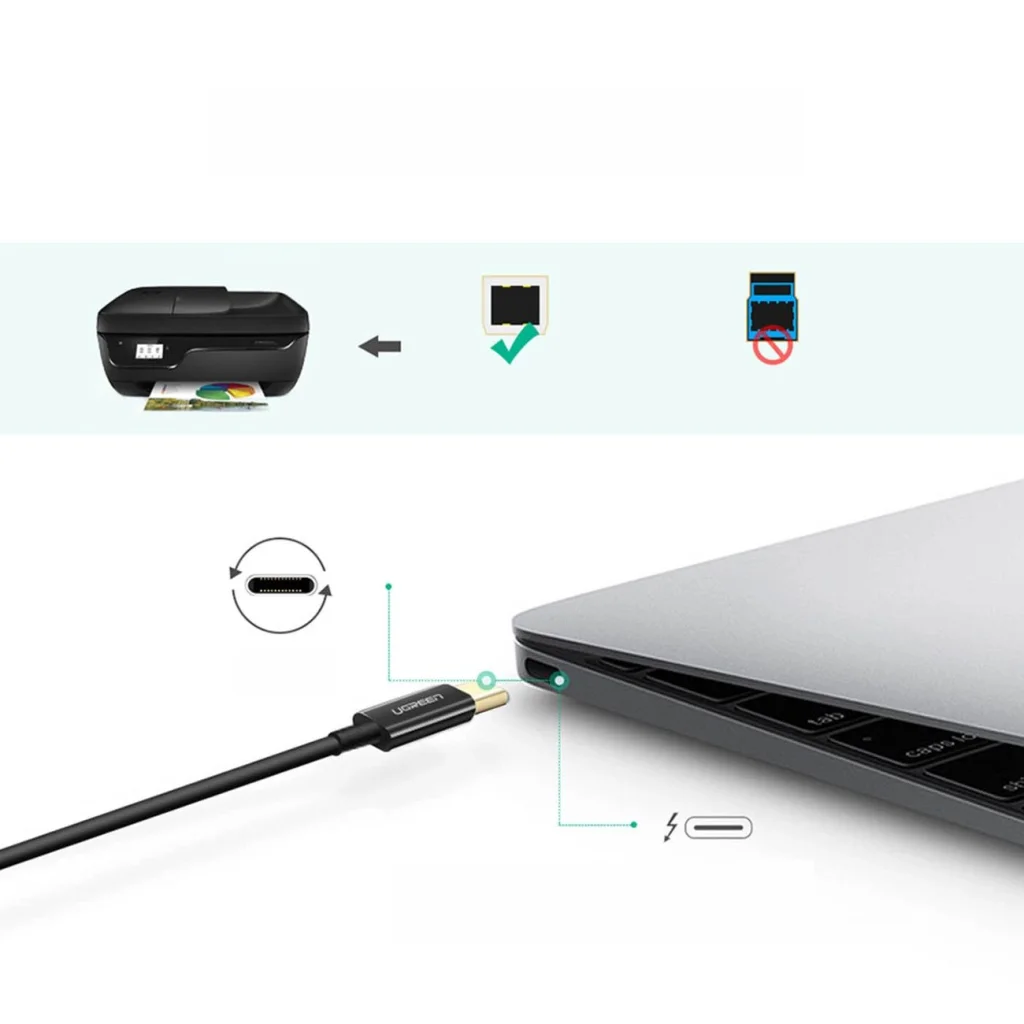 Ugreen nyomtató kábel USB-C - USB-B 480Mb/s 2m fekete (US241) A kiváló minőségű Ugreen kábel ideális választás azok számára, akik szkennert, nyomtatót vagy más USB-B aljzattal rendelkező eszközt szeretnének a számítógépükhöz csatlakoztatni. Az akár 2 méteres hosszúságnak köszönhetően lehetőség van olyan eszközök párosítására is, amelyek jelentős távolságra helyezkednek el egymástól. Azonban nem kell aggódnia a továbbított jel minőségének elvesztése miatt. Az oxigénmentes rézből készült mag felelős a jel stabilitásáért és veszteségmentes alakjáért. A kábel masszív kivitelű. A megerősített dugók és a teljes hosszát borító gumibevonat biztosítja, hogy a kábelünk (ha rendeltetésszerűen használják) nagyon hosszú ideig szolgálják Önt.