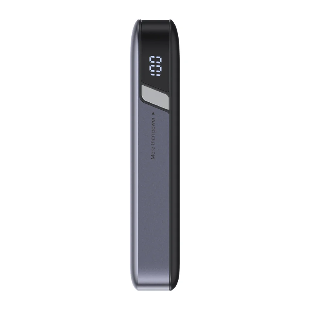 Könnyen leolvasható kijelző és alacsony fogyasztású üzemmód: A digitális LED-kijelzőn gyorsan ellenőrizheti a powerbank töltöttségi szintjét. Emellett az alacsony áramerősségű üzemmód lehetővé teszi, hogy biztonságosan töltsön kisebb elektronikai eszközöket, például TWS fejhallgatókat, okosórákat, elektromos fogkeféket vagy kis ventilátorokat. Az üzemmód a gomb 3 másodpercig történő lenyomva tartásával aktiválható.