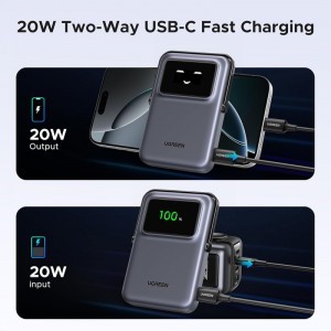Az UGREEN PB764 Uno powerbank több, mint egy egyszerű hordozható töltő – egy stílusos és intelligens kiegészítő, amely modern dizájnjával, fejlett technológiájával és felhasználóbarát funkcióival a mindennapok során hű társad lesz. A 10000mAh kapacitású, 20W-os teljesítményű, MagSafe kompatibilis töltő szürke színben érkezik, hogy készülékeid mindig elegendő energiával rendelkezzenek.