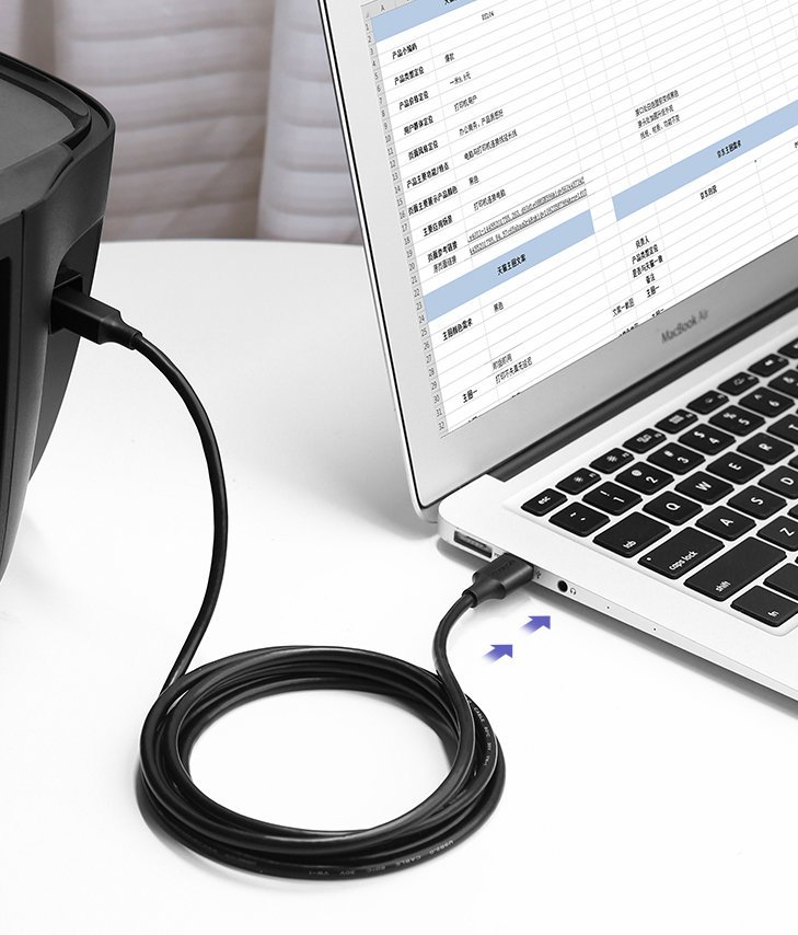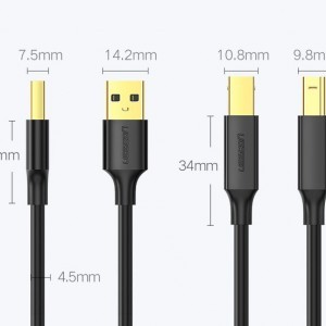 USB-A - USB-B végrésszel rendelkező, aranyozott csatlakozású kábel. Kifejezetten nyomtatók laptopokhoz és számítógépekhez való csatlakoztatásához. Magas, 480 Mbps adatátviteli sebességgel és prémium, korrózió álló szigeteléssel és végrészekkel.