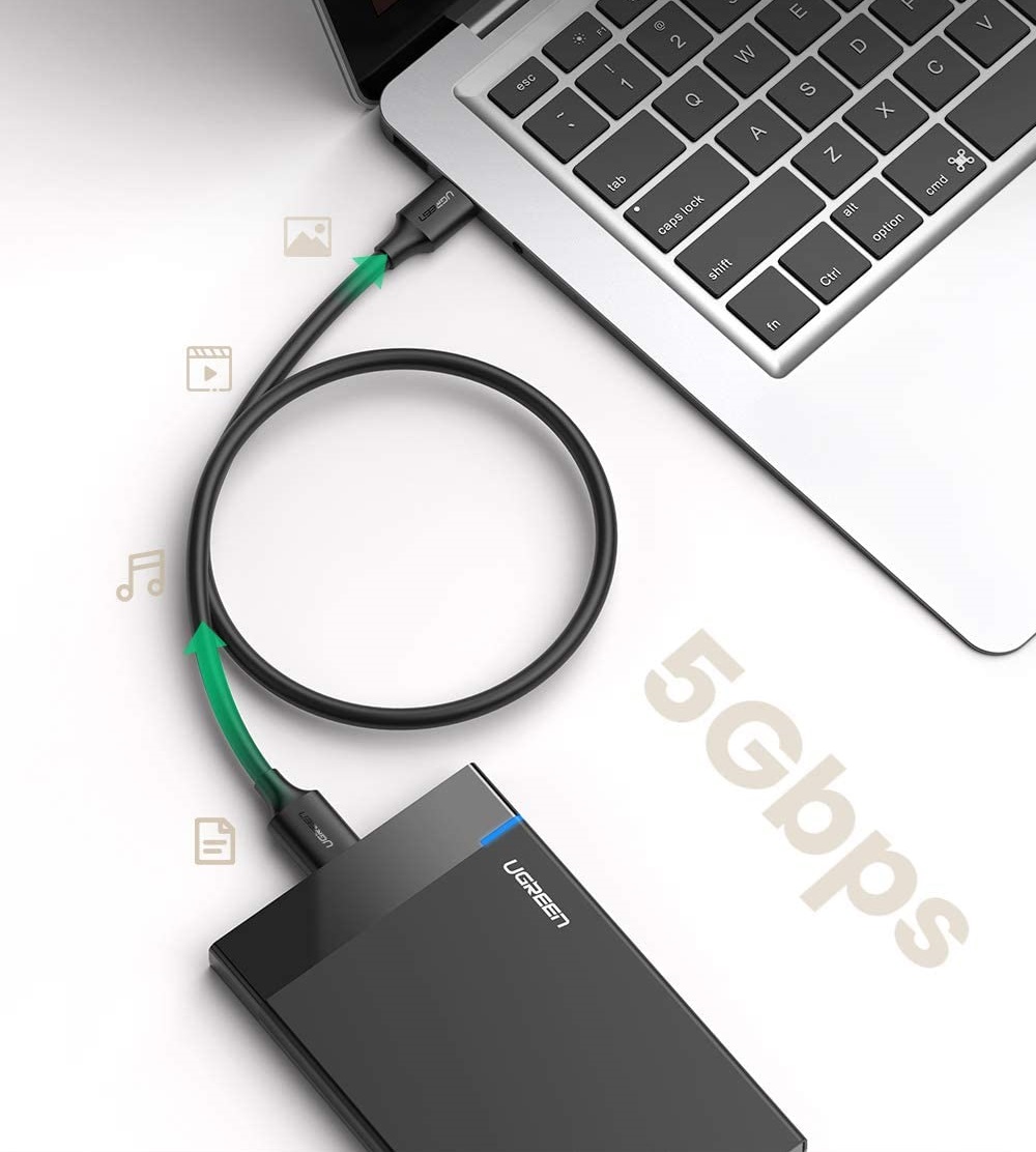 UGREEN kábel microUSB 3.0 szabványban. Gyors adatátvitelt tesz lehetővé akár 5 Gbps-ig az eszköz (pl. külső meghajtó) és a számítógép között, valamint hatékony tápellátást.
