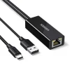 Az Ugreen USB-C to RJ45 hálózati adapter egy kompakt és kényelmes adapter, amely lehetővé teszi a vezetékes internet csatlakoztatását az USB-C porttal felszerelt eszközökhöz. Támogatja a 10/100 Mbps sebességet automatikus paraméteregyeztetéssel, biztosítja a stabil kapcsolatot, és illesztőprogramok telepítése nélkül működik. Az USB-A tápellátásnak és a Windows és Linux kompatibilitásnak köszönhetően remekül működik beépített RJ45 port nélküli laptopokkal, táblagépekkel és számítógépekkel.