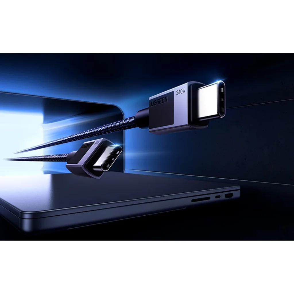 A UGREEN LP513 kábel villámgyors készüléktöltést biztosít 240 W-os teljesítmény mellett. Az E-Marker chip automatikusan beállítja a teljesítményt a csatlakoztatott készülékhez, így gyorsan tölthet laptopokat, okostelefonokat, táblagépeket és más eszközöket. Emellett akár 480 Mbps adatátviteli sebességet és masszív, strapabíró kialakítást kínál, amely ellenáll a sérüléseknek.