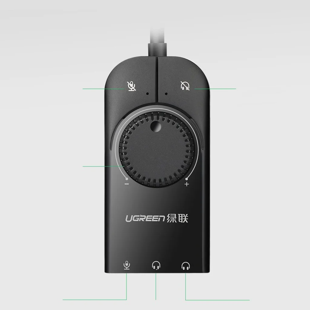 Ugreen USB külső hangkártya 3.5mm-es mini jack hangerőszabályzóval, 15cm fekete (40964)