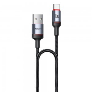 USB to Type-C Yesido - Adatkábel (CA129C), Gyors töltés, 18W, 3A, 480Mbps, CarPlay kompatibilis, Alumínium ötvözet, 1.2m - Fekete 2 900 Ft Termék adatlap