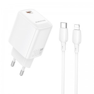 Borofone hálózati töltőadapter BN28 Fuente - Type C - PD 30W Type C - Lightning kábellel, fehér GaN 3 500 Ft Termék adatlap