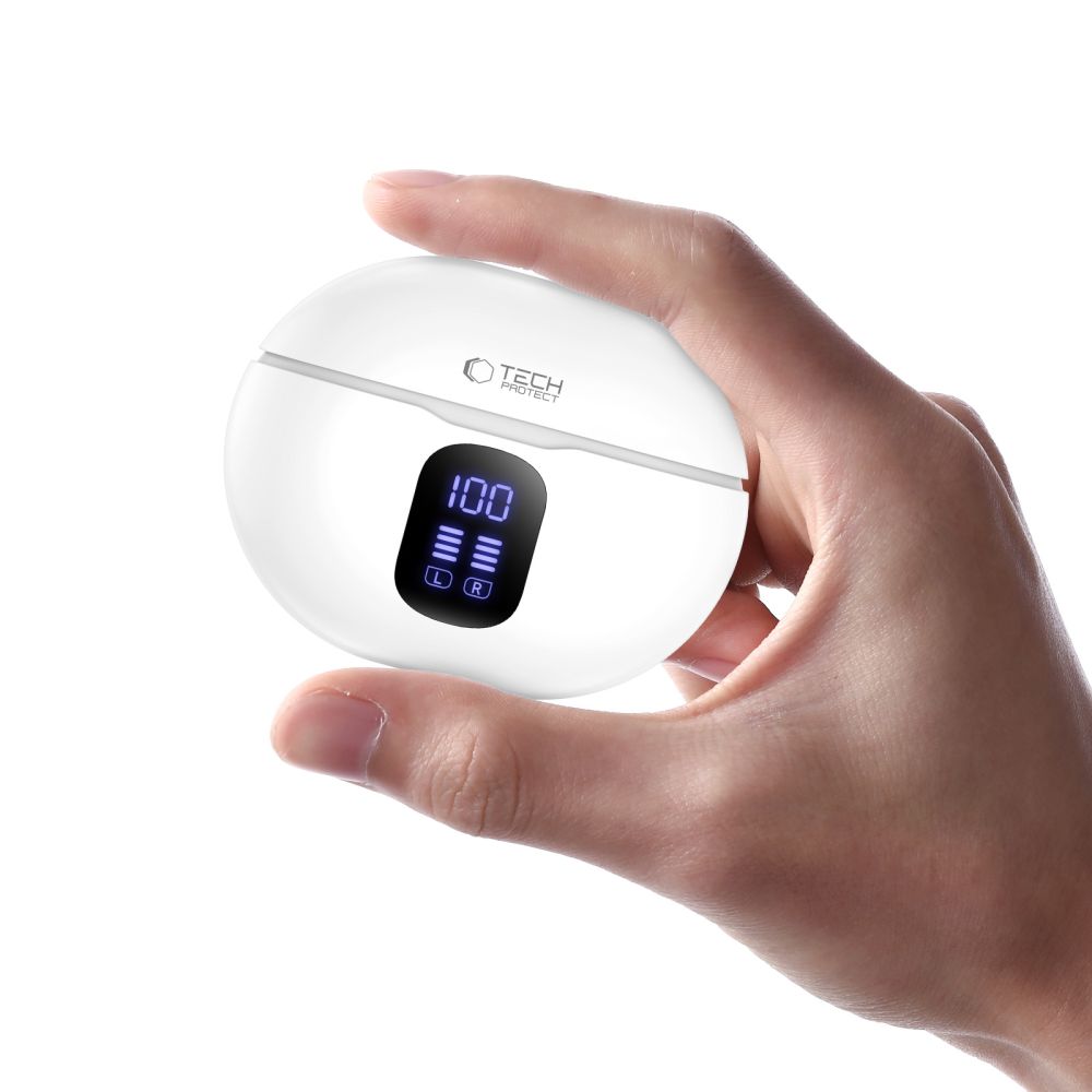 A Tech-Protect UltraBoost TWS Earphone Pro G2 vezeték nélküli fülhallgatók ötvözik a modern dizájnt, a magas hangminőséget és a használati kényelmet. Bluetooth 5.4-gyel és modern chippel felszerelve 10 méterig biztosítanak stabil kapcsolatot, valamint gyors párosítást a legtöbb eszközzel. A 13 mm-es meghajtók tiszta hangzást nyújtanak mély basszussal, az ENC technológia pedig hatékonyan csökkenti a zajt a beszélgetések során. A fülhallgatók egyetlen töltéssel akár 6 órán át működnek, a 300 mAh-s akkumulátorral ellátott tok pedig útközben többszöri feltöltést tesz lehetővé. Az intuitív érintésvezérlés lehetővé teszi a zenelejátszást, számok váltását, hangerő szabályozását, valamint a Siri hangsegéd használatát. A tok LED kijelzője mutatja a fülhallgatók és az akkumulátor aktuális töltöttségi szintjét, így mindig tudhatod, mikor érdemes tölteni őket. Tartós ABS anyagból készült, könnyű és kényelmes, ideális választás mindennapi zenehallgatásra, beszélgetésre és telefonhasználatra bármilyen helyzetben.