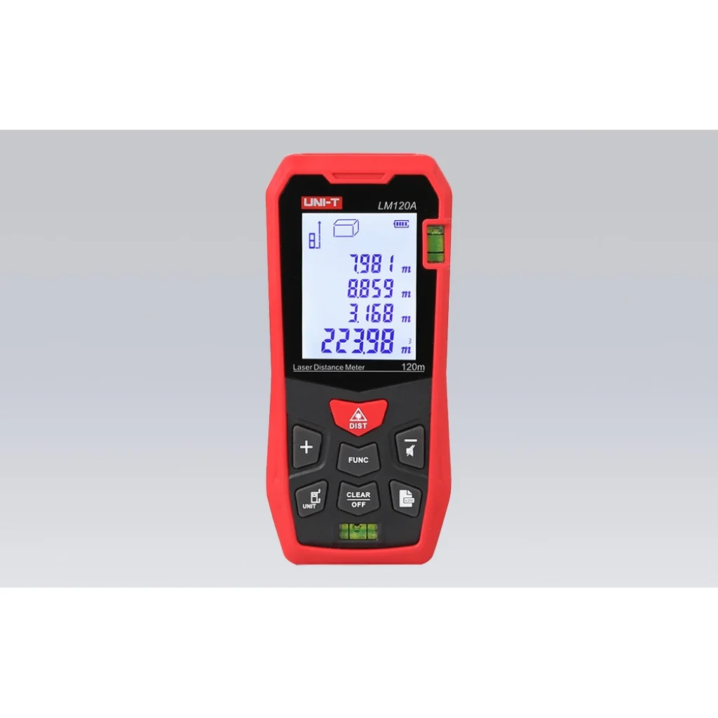 Multifunkcionalitás mindenkinek Az UNI-T LM120A nem csak távolságmérés - a készülék támogatja a maximális és minimális távolságmérési funkciókat, a folyamatos méréseket, valamint a gyors mező- és térfogatszámításokat is. Az eredmények tárolásának lehetőségével az adatok kézi jegyzetelés nélkül is könnyen összehasonlíthatók és elemezhetők. Az intuitív működés és a könnyen leolvasható kijelző lehetővé teszi a zökkenőmentes munkát a belsőépítészet, az építőipar, a mérnöki ellenőrzés, a gyárfelügyelet és az ingatlanfejlesztés területén.