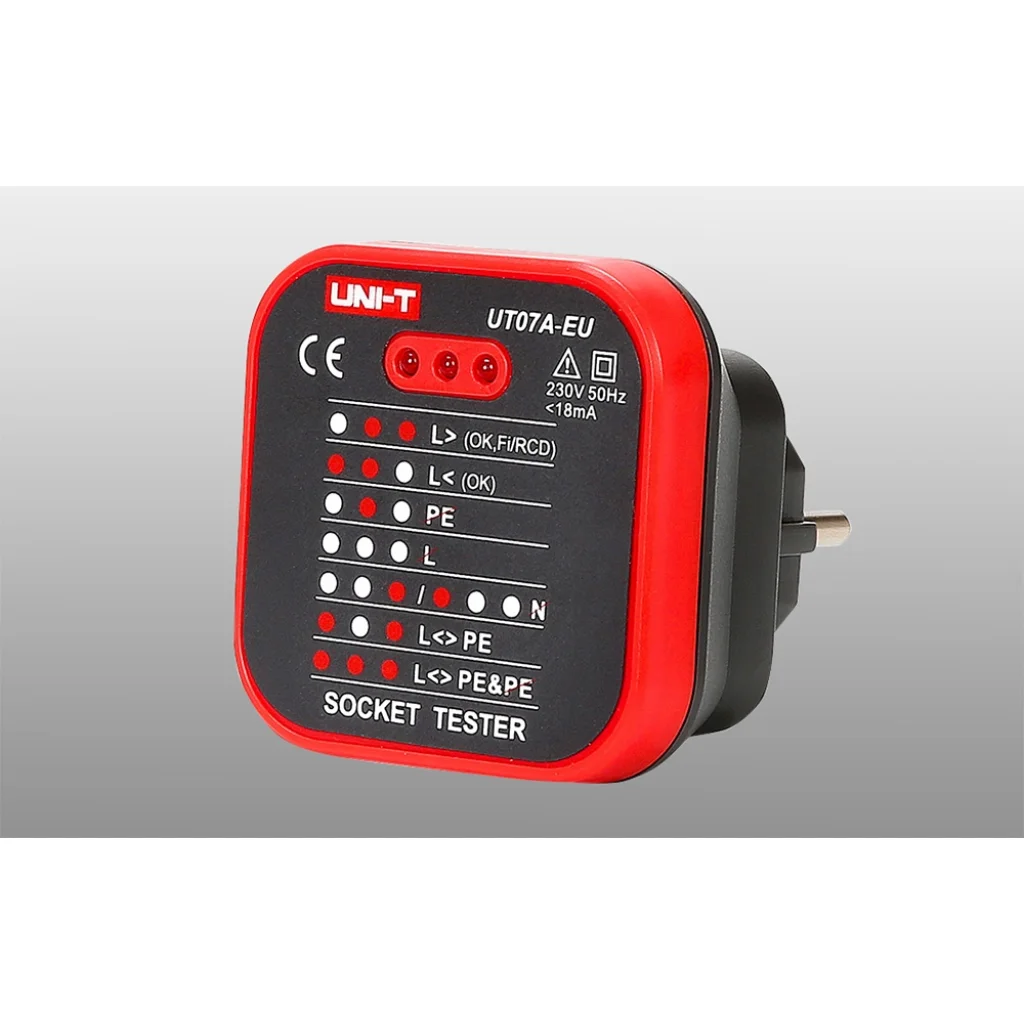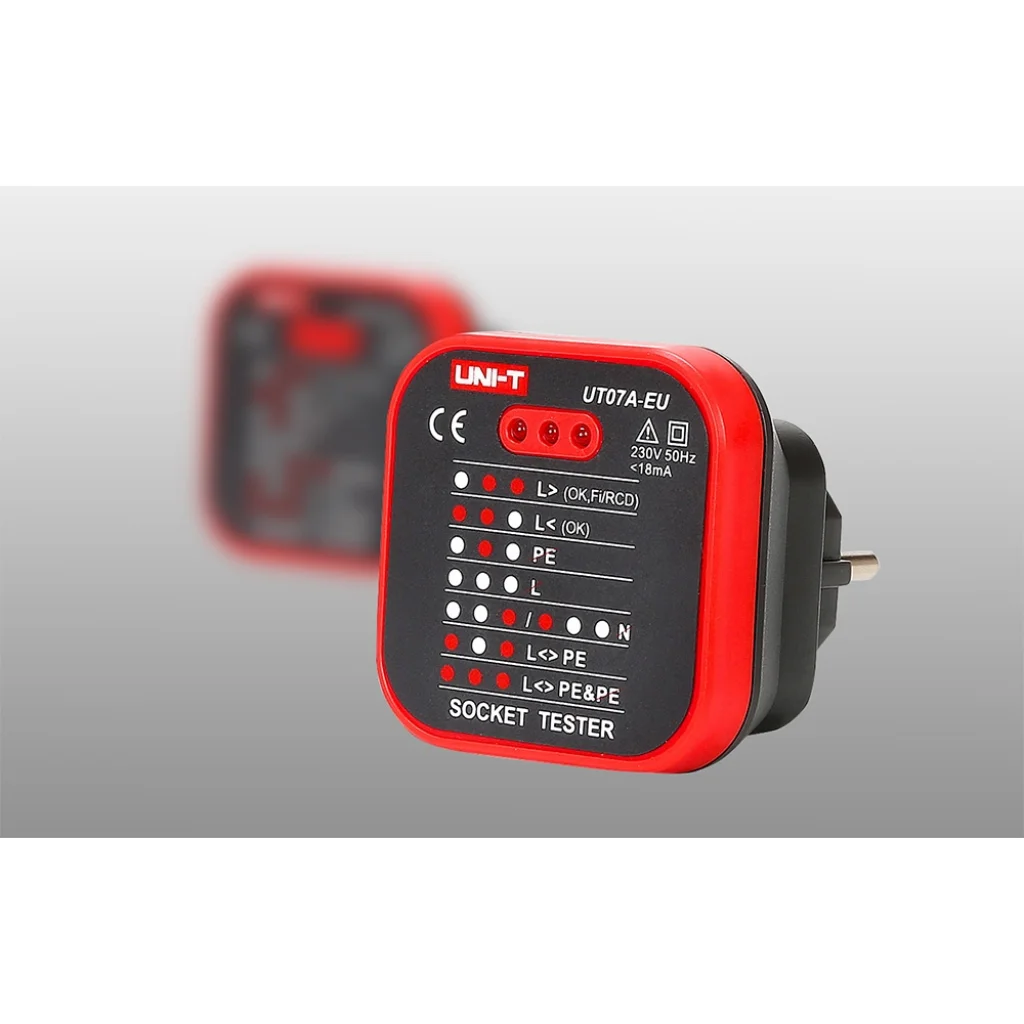 Az UT07A-EU olyan fényjelzőkkel van felszerelve, amelyek lehetővé teszik a hibás csatlakozások azonnali felismerését. Képes észlelni többek között a védő (földelő) vezeték hiányát, a nullavezető hiányát, valamint a fázis- és nullavezetők vagy a védővezetékek felcserélését. A tesztelő helyes csatlakoztatás esetén is kijelzi az információkat.
