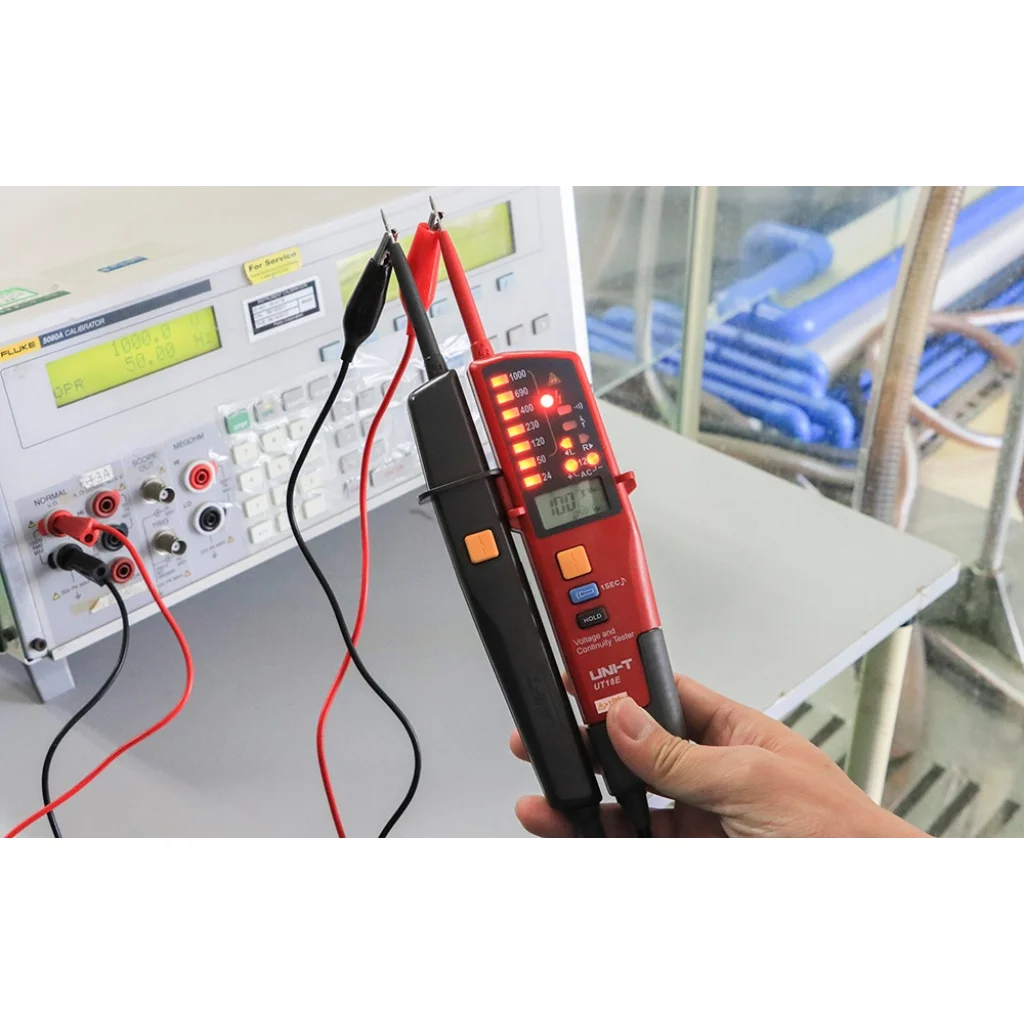 Az UT18E akár 8 feszültségszintet is támogat: 6V, 12V, 24V, 50V, 120V, 230V, 400V, 690V és 1000V. AC és DC üzemmódban is működik, így különböző típusú berendezésekhez alkalmas - a háztartási és az ipari berendezésekhez egyaránt. Az automatikus polaritásfelismerő funkció továbbá segít elkerülni a hibákat az egyenáramú áramkörök diagnosztizálásakor.