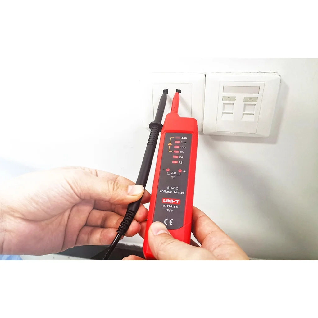Az UT22B-EU-t úgy tervezték, hogy zord környezetben is működjön - az IP54-es védettségi fokozat megvédi a készüléket a portól és a fröccsenő vízzel szemben, a masszív ház pedig megvédi a mechanikai sérülésektől, még akkor is, ha 2 méteres magasságból leejtik. Nincs szükség elemekre vagy újratölthető akkumulátorra, így kiküszöbölhető a megszakítások kockázata, a beépített bemeneti védelem pedig biztosítja a berendezés hosszú élettartamát. Az UNI-T UT22B-EU feszültségvizsgáló kiváló választás mindazoknak, akiknek fontos a megbízhatóság, a biztonság és a kényelem.