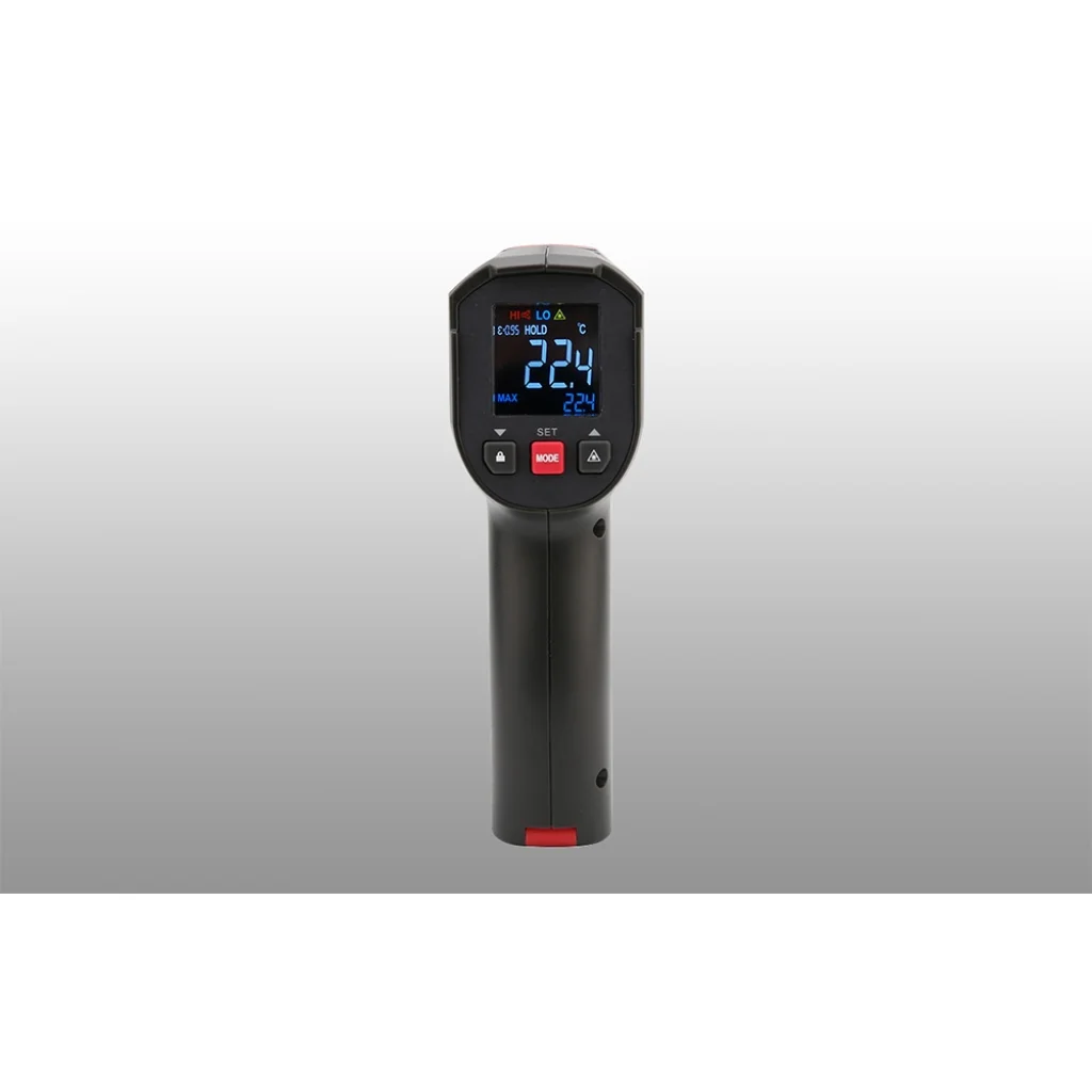 Az UNI-T UT306C infravörös hőmérő egy robusztus és intuitívan használható készülék, amely lehetővé teszi a felületi hőmérséklet pontos mérését a vizsgált tárgy érintése nélkül. Az UT306C széles mérési tartományt, ℃/℉ mértékegységek választási lehetőségét, könnyen leolvasható EBTN-LCD kijelzőt, valamint MAX, MIN, AVG és DIF funkciókat kínál a szélsőértékek, átlagértékek és differenciálértékek elemzéséhez. A hőmérő automatikusan kikapcsol, ha a mérés befejeződött, és az alacsony töltöttségi szint jelzője tudatja, ha az elemet ki kell cserélni. A készülék megfelel a CE és UKCA szabványoknak, ami garantálja a magas minőséget és a biztonságos használatot. Fogadjon a megbízhatóságra, és válassza az UT306C hőmérőt még ma!