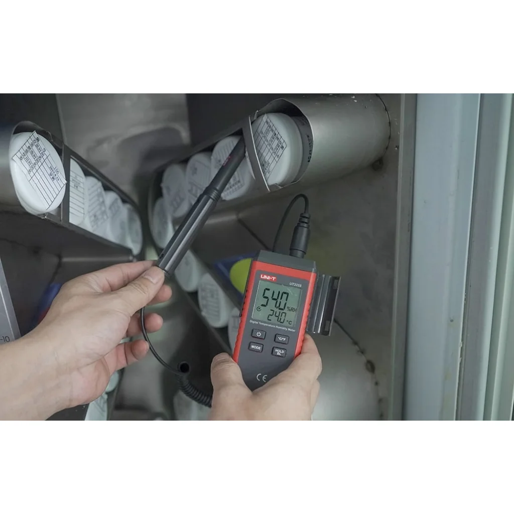 Az UNI-T UT333S osztott típusú érzékelő rugalmas rugós kábellel rendelkezik, így ideális a nehezen hozzáférhető helyeken - például légcsatornákban, berendezések belső tereiben vagy ipari létesítmények sarkaiban - végzett mérésekhez. Az UT333S hasznos eszköz mind otthon, mind műszaki környezetben, ahol fontos a környezeti feltételek gyors és pontos leolvasása.