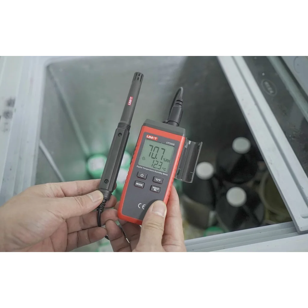 Az UT333S -10°C és 60°C (vagy 14°F és 140°F) közötti hőmérsékletet képes mérni 0,1°C felbontással és ±1°C pontossággal. A páratartalom mérése a teljes tartományban, 0% és 100% RH között lehetséges, 0,1%-os felbontással és ±5%-os pontossággal 20-80% RH között. A nagy érzékenységű érzékelőnek köszönhetően a készülék a bekapcsolástól számított mindössze egy másodpercen belül megbízható adatokat szolgáltat, így gyors és hatékony a napi használatban.