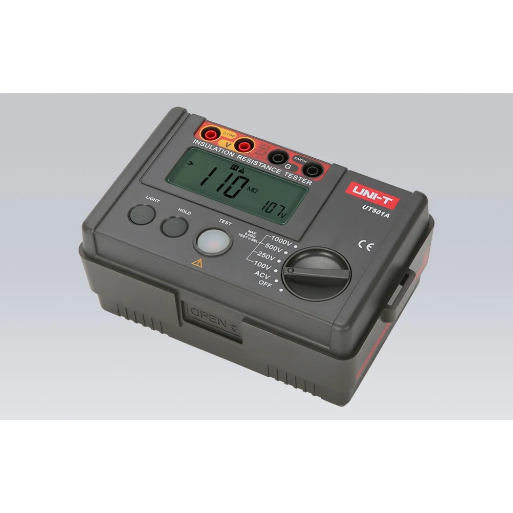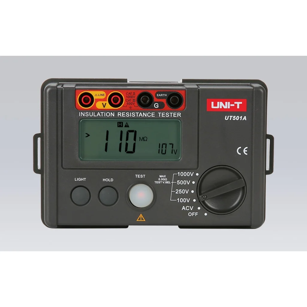 Az UT501A kompakt és robusztus háza biztosítja, hogy a készülék a terepen és az ipari telephelyeken is ellenálljon a nagy igénybevételnek. A háttérvilágítással ellátott LCD-kijelző lehetővé teszi az eredmények leolvasását még zord fényviszonyok között is, az automatikus kikapcsolás pedig meghosszabbítja az akkumulátor élettartamát. A folyamatos mérési képességgel és az intuitív figyelmeztető rendszerrel teljes ellenőrzést nyerhet a vizsgálati folyamat felett, így gyorsan és biztonságosan értékelheti a berendezés állapotát. Az UNI-T UT501A nélkülözhetetlen partner mindenütt, ahol a megbízhatóság és a pontosság számít.