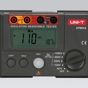Az UNI-T UT501A szigetelési ellenállásmérő egy sokoldalú készülék, amelyet elektromos berendezések és háztartások szigetelési ellenállásának pontos mérésére terveztek. Képes mérni az elektromos áramkörök közötti vagy az áramkör és a föld közötti szigetelést. Az UT501A a szigetelési ellenállás, a váltakozó feszültség, az alacsony ellenállás, valamint a PI (polarizációs index) és a DAR (dielektromos abszorpciós együttható) mérését teszi lehetővé. A 2000 számjegyű LCD kijelzővel, háttérvilágítás funkcióval, túlterhelésjelzővel és automatikus kikapcsolással felszerelt UT501A biztonságot, pontosságot és kényelmet biztosít a működés során. Emellett a CE és UKCA tanúsítványok megerősítik a készülék magas minőségét és az európai szabványoknak való megfelelését.