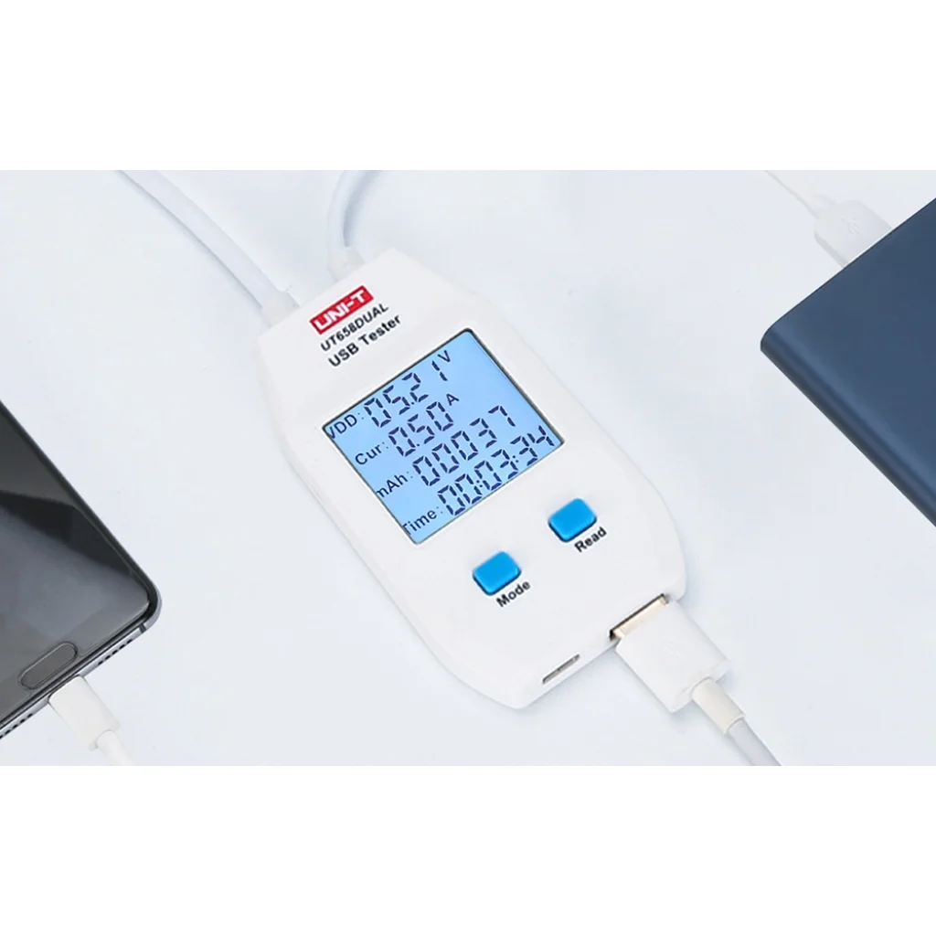 Az UT658DUAL közvetlenül az USB-portról táplálható, és nem igényel további elemeket. Kompakt mérete és könnyű súlya (65,8 g) miatt rendkívül hordozható és könnyen szállítható. Egyképernyős kijelzőrendszerének és intuitív kezelésének köszönhetően laboratóriumi körülmények között éppúgy jól működik, mint szervizelés vagy otthoni vizsgálatok során.