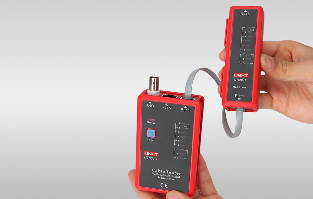 Multifunkcionalitás, amely időt takarít meg: Az UT681C támogatja az RJ45, RJ11 és BNC csatlakozókkal végződő kábeleket (a készletben található RJ45-BNC adapteren keresztül). Lehetővé teszi a jel folytonosságának gyors ellenőrzését és a rövidzárlatok, nyitott áramkörök és hibás csatlakozások - beleértve a keresztezett párokat is - diagnosztizálását. A beépített LED-tömb (LED1~LED8 és LED_G) lehetővé teszi a kábel egyes vezetőinek állapotának egyszerű értékelését, mind gyors, mind lassú vizsgálati módban.
