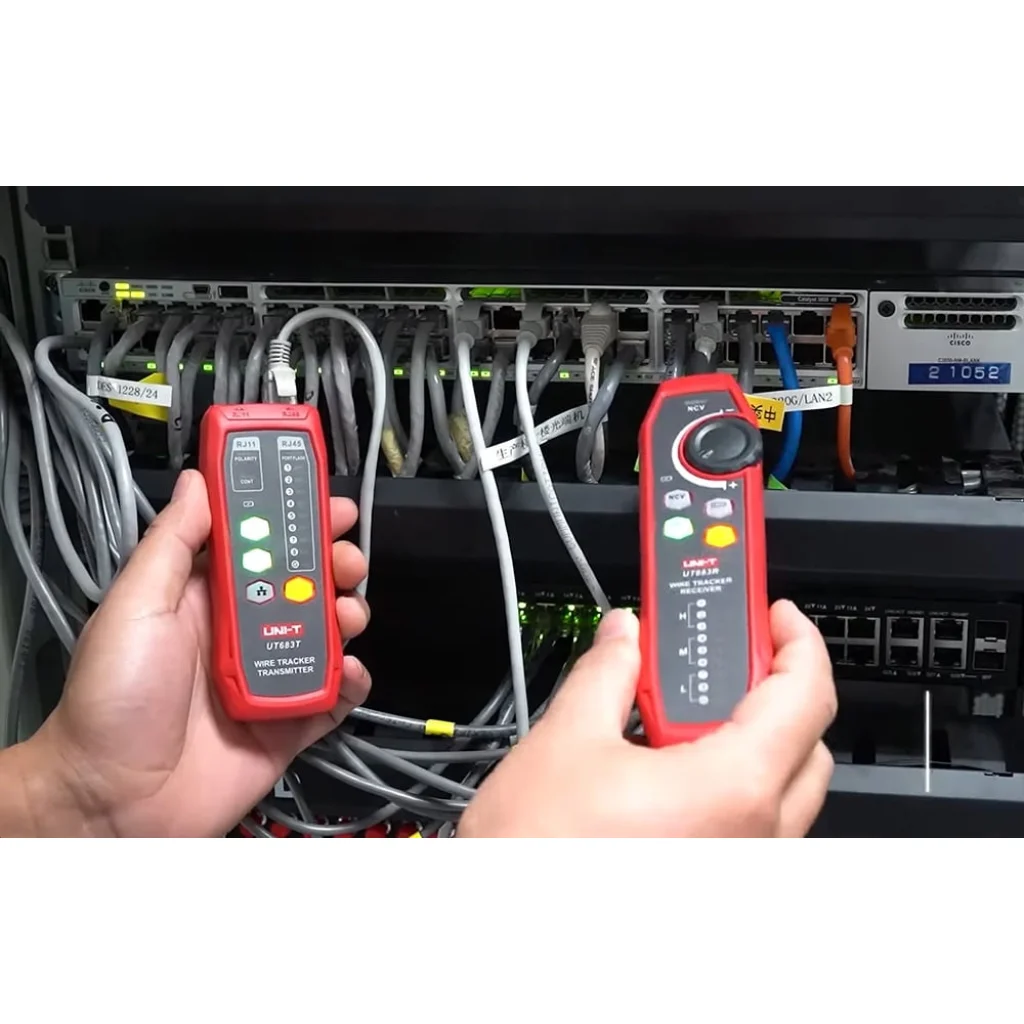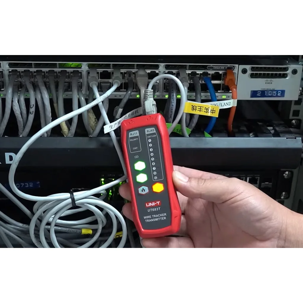 Az UT683KIT képes gyorsan bemérni egy vezetéket a kötegben, és pontosan meghatározni a hiba helyét - még 3000 métert meghaladó kábelhossz esetén is (RJ11 esetén). Lehetővé teszi továbbá a kábel folytonosságának ellenőrzését és a rövidzárlat vagy szakadás vizsgálatát (10 kΩ-ig), valamint a polaritás azonosítását. A portok megvilágítási funkciója tovább könnyíti a helyes csatlakozások ellenőrzését.