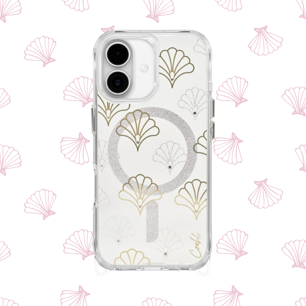 The seashell motif on the transparent surface and the silver ring will give your device a delicate, elegant character.