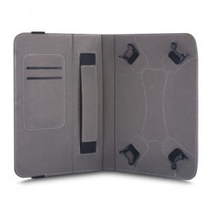 Univerzális tablet tok 7-8 hüvelykes képernyőjű táblagépekhez. A tok kiváló minőségű ökológiai bőrből készült. A fedő alapfunkcióján kívül a tok támaszként is szolgál a táblagéphez, és zsebeket is tartalmaz dokumentumok vagy fizetési kártyák számára. A tok belsejében a fogantyúk állíthatóak, és a záródás hasonló a hagyományos aktatáskákhoz.