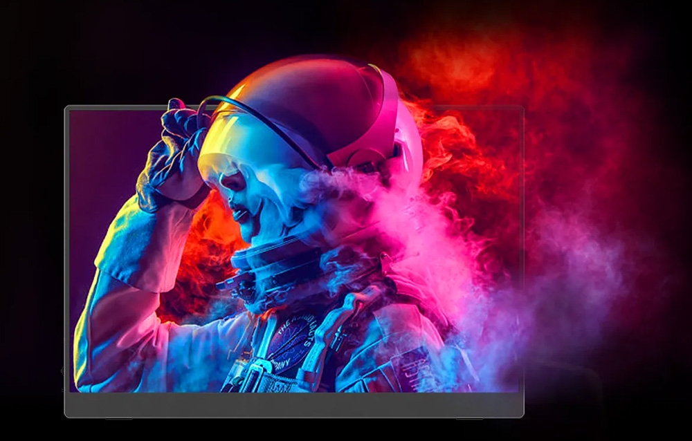 Kompakt ház és alumíniumszerkezet: Az alumíniumszerkezet növeli a mechanikai sérülésekkel szembeni ellenállást. A teljes méret 344,68 mm szélesség × 215,42 mm magasság, így a monitor könnyen szállítható. Emellett a készülék tápellátása USB-C portkábelről történik.