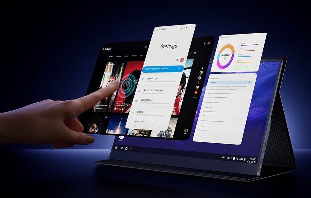 Az 1920×1080-as felbontású, 15,6 hüvelykes képátlójú képernyő tiszta 16:9 képarányt biztosít, a 10 pontos érintéstechnológiával pedig gesztusvezérlést és pontos egér nélküli működést tesz lehetővé. A 60 Hz-es frissítési frekvencia és a 20 ms válaszidő elegendő a mindennapi feladatokhoz és a dokumentumokkal való munkához.