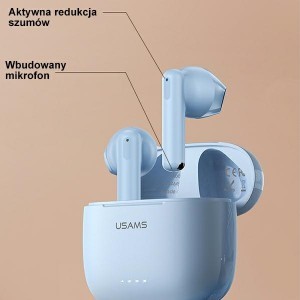USAMS TWS Fülhallgató - US14 Sorozat In-ear fülhallgató, amely Bluetooth 5.3 technológiát használ. A fejlett technológia gyorsabb csatlakozást garantál, mint a BT 5.2, erősen csökkenti a zavarokat és gördülékeny hangzást biztosít. A fülhallgatók akár 10 méteres távolságig csatlakoznak az eszközhöz. Az akkumulátor a töltőtokban akár 35 órányi folyamatos zenelejátszást tesz lehetővé, ha rendszeresen feltöltjük őket a tokkal. A nagy akkumulátorkapacitás - 400 mAh - ötszöri fülhallgató töltést tesz lehetővé, lehetővé téve a fülhallgató egész napos használatát. A könnyű kivitel és a megfelelő forma kényelmes használatot biztosít, és súlya mindössze körülbelül 3,5 g, így alig érezni nyomást. Az eszköz intelligens érintésvezérléssel van felszerelve, amely könnyen felismeri a parancsokat - csak érintse meg a fülhallgatót, és az azonnal reagál minden mozdulatára.