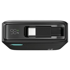 Ennek a powerbanknak az egyedisége az integrált USB-C kábelben rejlik. A kábel rendkívül kényelmes a mindennapi használathoz, és a powerbank belsejébe húzódik vissza a könnyű tárolás érdekében. A kábel hossza állítható – 50 cm –, ami bőségesen elegendő ahhoz, hogy kényelmesen összekapcsold a telefonodat a gyors töltéshez.