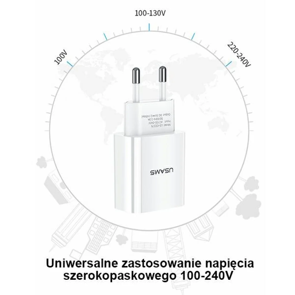 USAMS T18 fali töltő USB-C (PD) bemenettel - Intelligens áram adaptáció, gyors töltés - Erős ABS kialakítás, ellenáll a sérüléseknek - Gyors Töltés 2.1A - Biztonságos és stabil. Beépített intelligens chip, automatikusan szűri a veszélyes feszültséget és áramot, védi az akkumulátort - Anyag: ABS - Teljes kimeneti teljesítmény: 5V - 2.1A