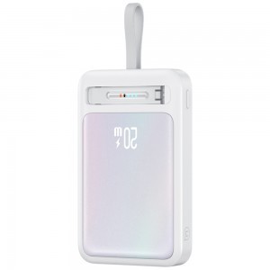 Kettős töltési teljesítmény: Két eszköz egyidejű töltésének képességével – kábelen és vezeték nélküli úton – ez a modell multitasking helyzetekben tökéletesen működik. Az USB-C gyors töltést kínál akár 22,5W-ig, míg a vezeték nélküli töltés akár 15W-ot is elérhet. A powerbank automatikusan igazítja a paramétereket a csatlakoztatott eszközhöz, biztosítva a teljesítményt és a biztonságot. A beépített USB-C kábel lehetővé teszi a gyors töltést további kiegészítők nélkül.