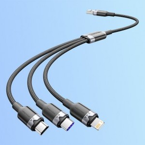 Az USB 2.0 A - 3 az 1-ben 6A Vention CTRBG 1,5M kábel tökéletes megoldás azok számára, akik értékelik a kényelmet és a funkcionalitást. Az egyetlen kábel használatának köszönhetően egyszerre három különböző eszköz töltése lehetséges, ami nagyban megkönnyíti a technológia mindennapi használatát. Az univerzális kialakításnak és a modern műszaki megoldásoknak köszönhetően ez a kábel még a legigényesebb felhasználók igényeinek is megfelel.