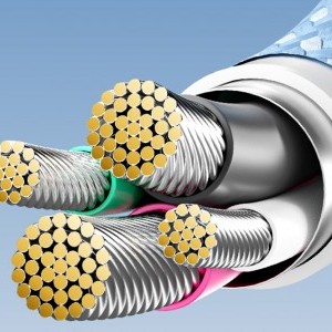 Ezt a kábelt erős PVC-konstrukció és alumínium ház jellemzi, amely nemcsak esztétikus megjelenést biztosít, hanem védelmet nyújt a mechanikai sérülésekkel szemben is. Emellett rugalmas burkolata megakadályozza a kábel összegabalyodását, így rendkívül kényelmes a használata.
