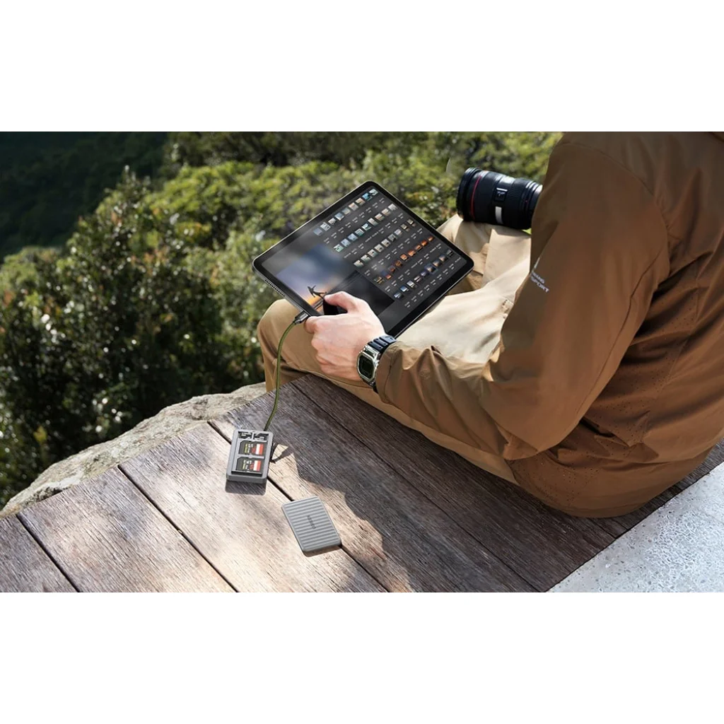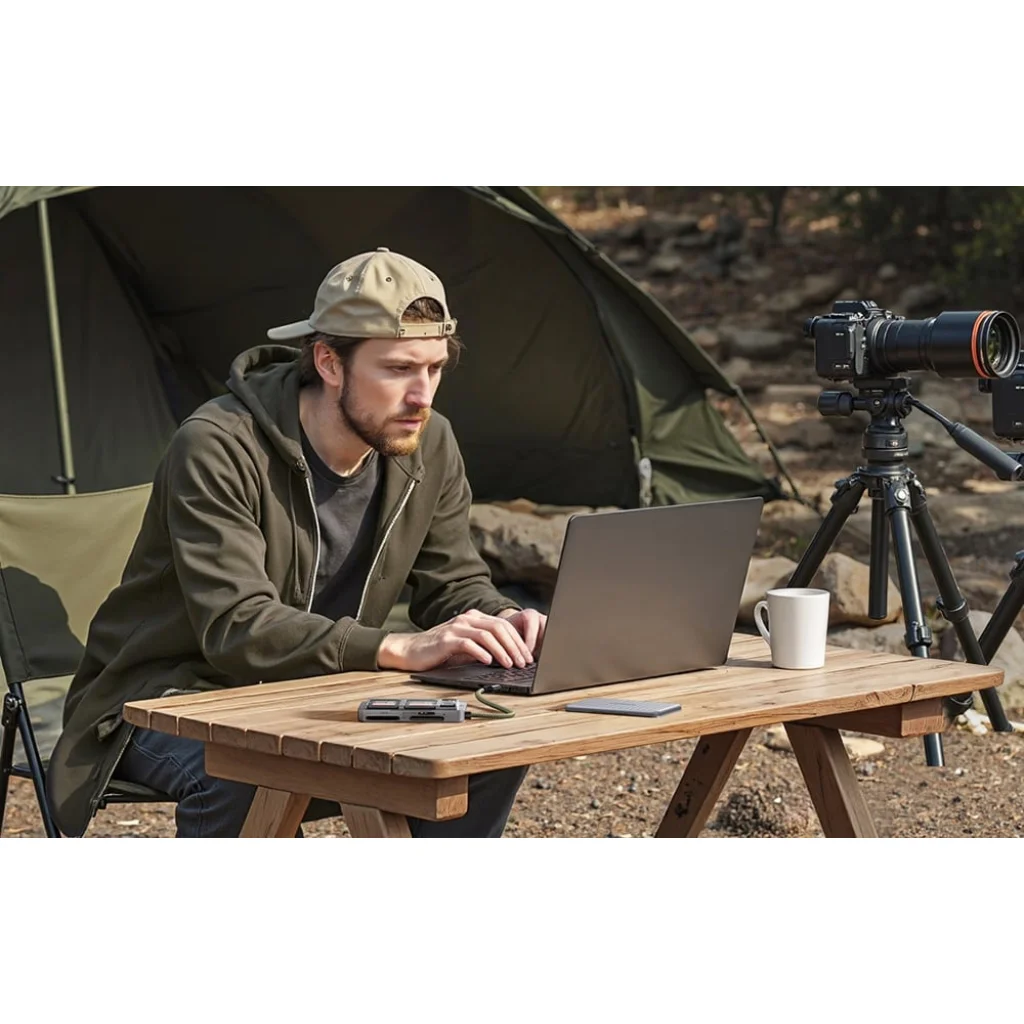 A négy memóriakártya számára beépített rekesznek köszönhetően nem kell többé külön tárolnia a hordozókat. A tokban 2 SD-kártya és 2 TF-kártya számára van hely, a mágneses fedél pedig megvédi őket a portól és a véletlen kicsúszástól. Ez praktikus megoldás azoknak, akik mobilak és gyakran dolgoznak terepen.