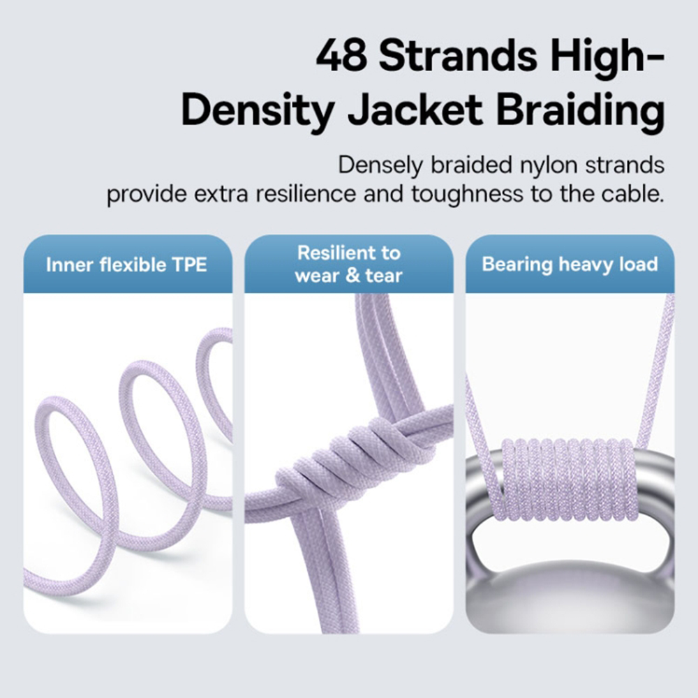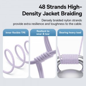 Ne kössön kompromisszumot a tartósság terén! A Baseus Gem töltőkábel 48 szálas, rendkívül sűrűn fonott nejlon borítással készült, amely páratlan ellenállást és szilárdságot biztosít. Ez a strapabíró külső réteg hatékonyan védi a kábelt a mindennapi használat során fellépő kopástól, szakadástól és csomósodástól.