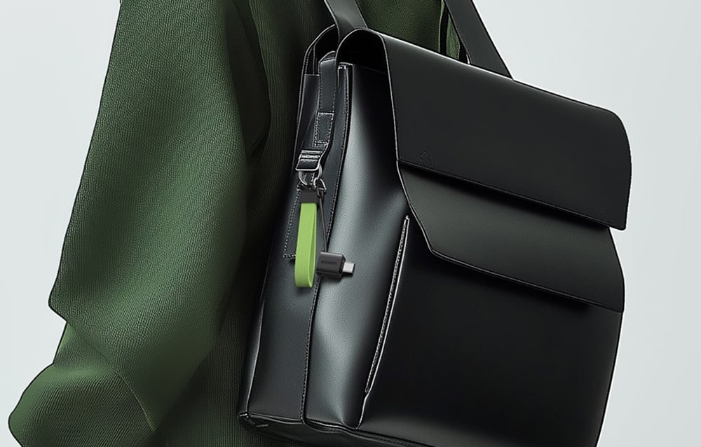 Kompakt mérete (1,76 × 1,75 × 0,95 cm) rendkívül kézreállóvá teszi az adaptert, a beépített biztonsági hurok pedig lehetővé teszi, hogy kábelre vagy kulcstartóra rögzítse, így megóvja az elvesztéstől.