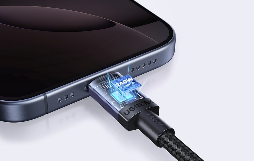 Rendkívül gyors töltés - akár 240 wattos töltés Az Ugreen L532 akár 240 wattos (48V/5A) töltést is támogat, ami azt jelenti, hogy nagyon rövid idő alatt könnyedén feltölti laptopját, táblagépét vagy okostelefonját. A PD 3.1 (Power Delivery, gyors töltési szabvány az USB-C csatlakozós eszközökhöz) és a PPS 2.0 (Programmable Power Supply, gyors töltési szabvány az USB-C csatlakozós eszközökhöz) technológiának köszönhetően a kábel lehetővé teszi az expressz töltést - Galaxy S25 Ultra akár 65%-ra 30 perc alatt, iPhone 16 Pro Max akár 60%-ra, MacBook Pro 2024 akár 56%-ra és iPad Pro 2024 akár 50%-ra ugyanennyi idő alatt. Ez igazi időmegtakarítás, különösen, ha sietsz.