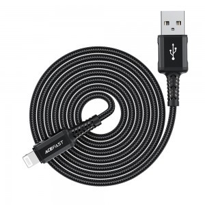 Termék leírás USB to Lightning 2.4A Fekete Acefast Data Cable (C4-02) - Gyors Töltés, Alumínium Ötvözet, 1.8m