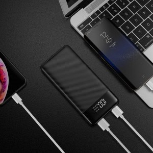 A minimalista, karcsú és könnyű dizájn (mindössze 220 g és 135.5 x 67 x 15 mm méret) révén a powerbank kényelmesen magával vihető bárhová, akár zsebben, akár táskában. A prémium karbon szálas felület nem csak modern és elegáns megjelenést kölcsönöz, hanem jobb tapadást és karcállóságot is biztosít. Az előlapon található intelligens LED kijelző pontosan mutatja a powerbank aktuális töltöttségi szintjét százalékban, így sosem éri meglepetés.
