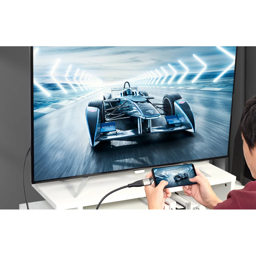 Például az adapter lehetővé teszi egy USB-C porttal ellátott telefon vagy laptop csatlakoztatását TV-hez vagy monitorhoz. Így kényelmesen játszhat, sorozatokat nézhet, előadásokat tarthat a találkozókon, és megmutathatja szeretteinek nyaralási fotóit! A termék 2 megjelenítési módot támogat - Tükör (ugyanaz a kép az eszközön és a második képernyőn) és Extended (képernyőkiterjesztés). Élvezze a kiváló minőségű fényképeket és videókat szinte bármilyen helyzetben!