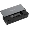 Az egyik legkiemelkedőbb funkció a dokkolóállomásba rejtett SSD hely, amely támogatja az NVMe 10G és SATA 5G meghajtókat. A Verbatim dokkolóállomás stílusos, levehető tetejének felemelésével könnyedén behelyezhet egy M.2 SSD-t, extra tárhelyet biztosítva a projekteknek, játékoknak vagy a biztonsági mentéseknek anélkül, hogy külső meghajtót kellene cipelnie. Ez a megoldás nem csak praktikus, de elegánsan elrejti az SSD-t a dokkolóházban, minimalista és rendezett munkaterületet eredményezve.