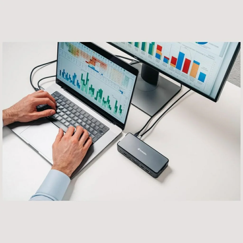 A Verbatim 15 az 1-ben USB-C dokkolóállomás a modern digitális munkakörnyezet alapköve. Ez a kompakt és stílusos eszköz 15 portot egyesít, hogy egyszerűsítse a csatlakozást és maximalizálja a hatékonyságot, legyen szó otthoni irodáról, kreatív projektekről vagy multimédiás felhasználásról. A legújabb technológiákat ötvözve kínál villámgyors adatátvitelt, lenyűgöző vizuális élményt és számos bővítési lehetőséget.