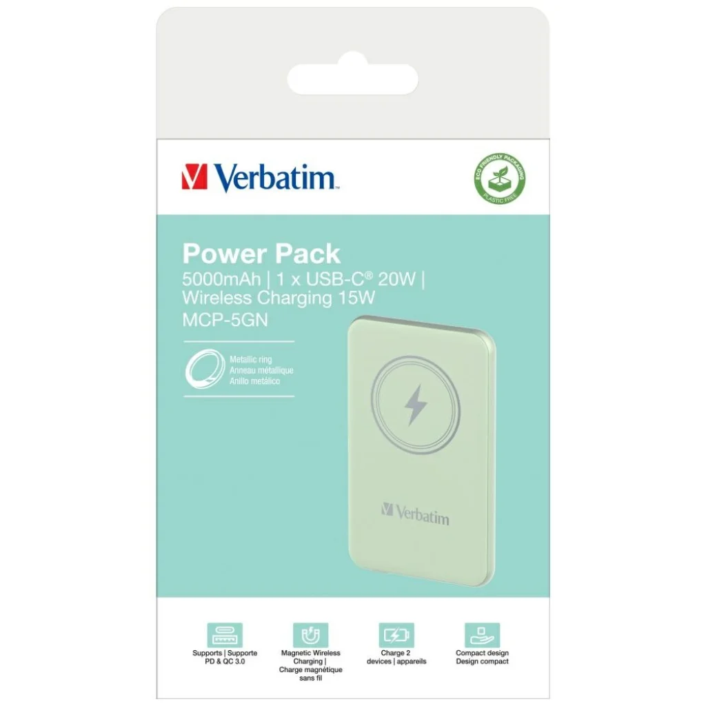 A Verbatim Charge'n'Go power bankok sokoldalúságra és kényelemre lettek tervezve, így tökéletes eszközök a mindennapi használatra. A 15W-os mágneses vezeték nélküli töltéssel és PD20W technológiával a Charge'n'Go gyors és hatékony töltést biztosít különféle eszközök számára. A mágneses rögzítés lehetővé teszi az egyszerű csatlakozást a telefonhoz, így a vezeték nélküli töltés útközben is lehetséges. A power bank kompakt és könnyű kialakítása lehetővé teszi, hogy könnyen hordozható legyen a zsebben vagy a táskában, biztosítva a mobilitást és a kényelmes használatot.