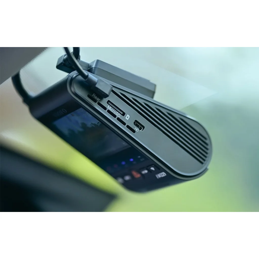 A készülék támogatja a HDMI átvitelt, így a tömörítetlen videó külső képernyőn is megjeleníthető, ami ideális a felvételek elemzéséhez. A mellékelt, két USB-C porttal rendelkező autós töltő lehetővé teszi a DVR és más mobileszközök egyidejű töltését. Az elülső és hátsó kamerák CPL-szűrői viszont minimalizálják a fényvisszaverődést, javítva a képminőséget.