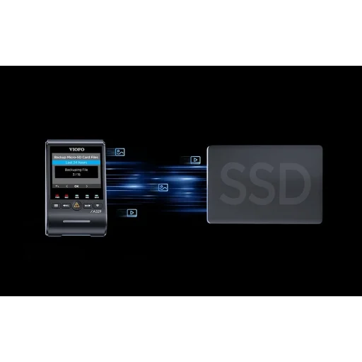 A VIOFO A329 az első olyan DVR, amely támogatja a külső SSD-meghajtókat. Ez a megoldás lehetővé teszi a több mint háromhetes napi útvonalak felvételeinek tárolását, kiküszöbölve a fájlok gyakori felülírásának szükségességét. Ráadásul az SD-kártyáról SSD-lemezre történő biztonsági mentés megvédi a legfontosabb adatokat, csökkentve a létfontosságú felvételek elvesztésének kockázatát.